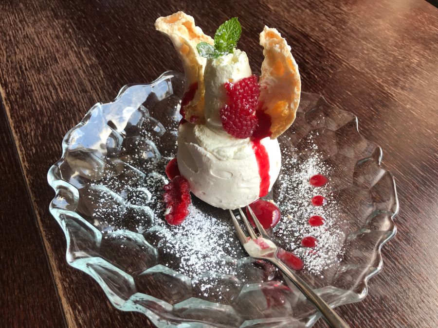 z kremem mascarpone z sosem malinowym